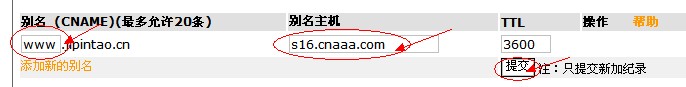 若您是要指向到别名主机,您需要选择别名(CNAME),设置为“www”,“别名主机”中输入您的别名主机地址,然后“提交”,设置完一般需要6-72小时生效即可!